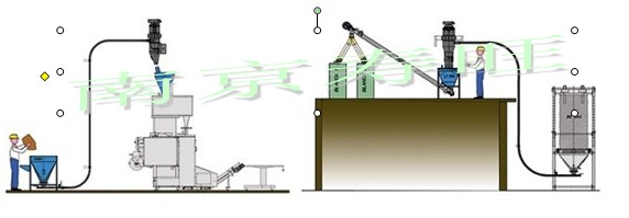 負壓輸送氣力輸送系統(tǒng)一般用羅茨真空泵或真空發(fā)生器為動力源,抽吸系統(tǒng)內(nèi)的空氣,輸送管內(nèi)形成低于大氣壓的負壓,進風口形成物料與氣體的兩相流,進入管道,在一定的流速下,吸送到終點的料氣分離設備,物料在重力或離心力的作用下分離出來進入料倉,氣體經(jīng)羅茨真空泵或離心機排入大氣。